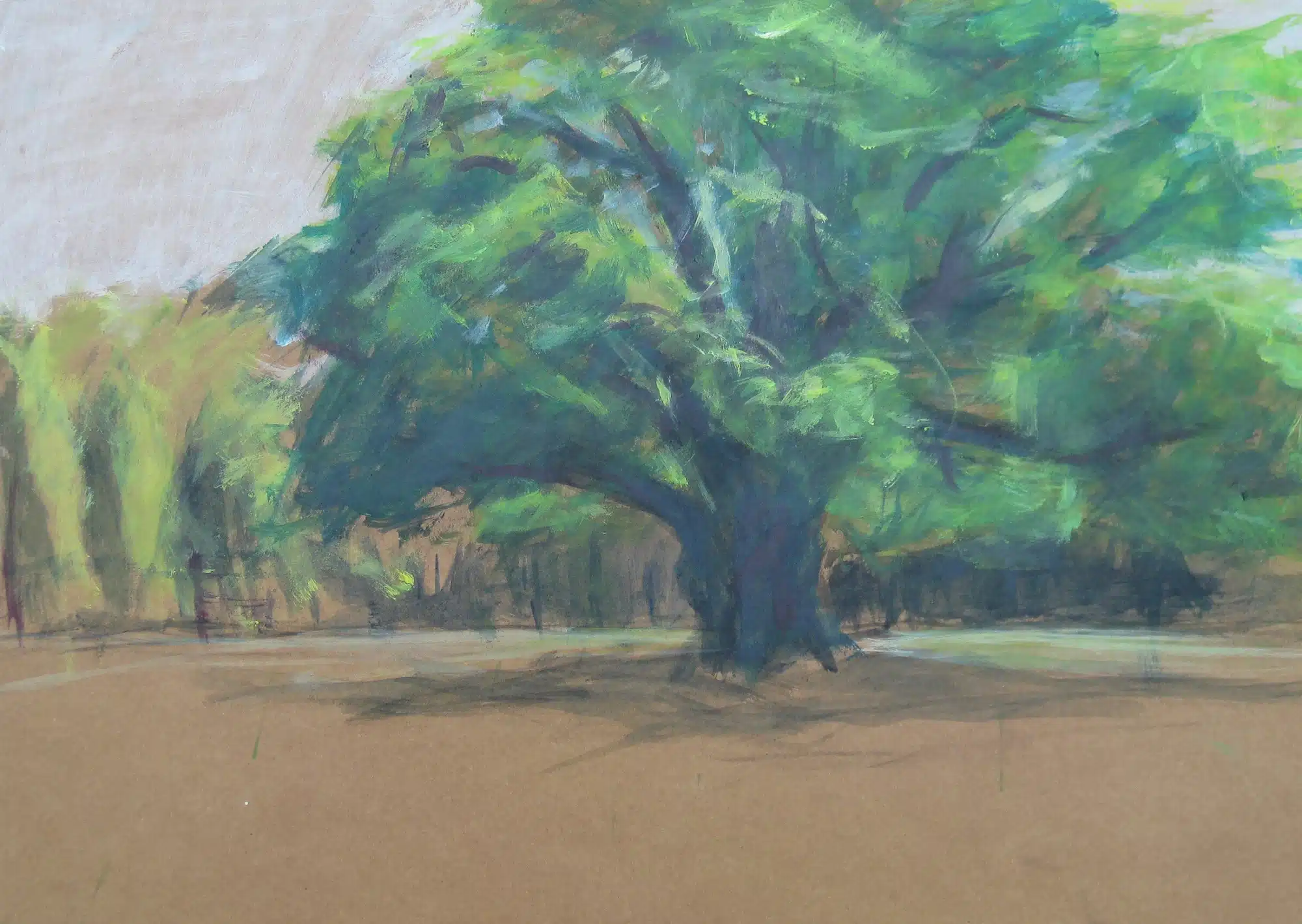 Zomereik, 2012, acryl op kraftliner papier met lijst 47 x 60 cm
