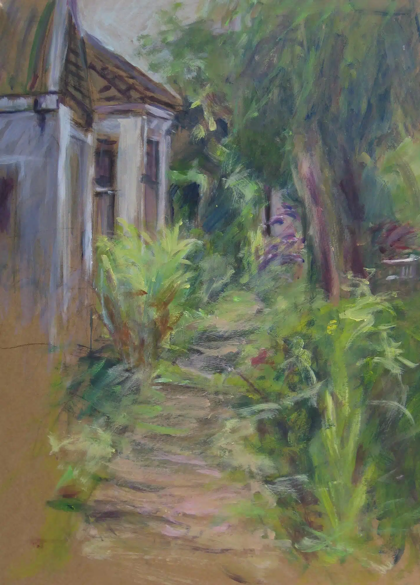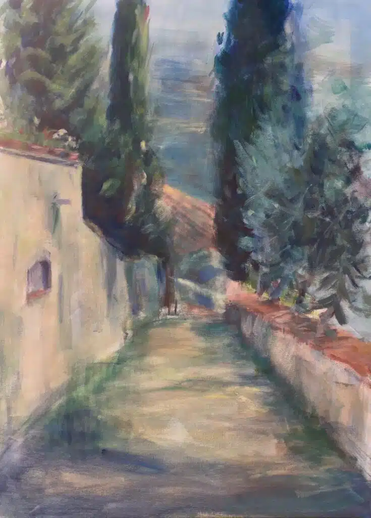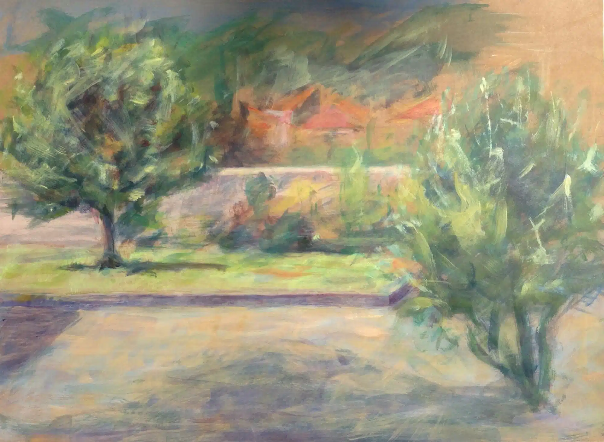 Tuin bij villa Toscane 2013 acryl op kraftliner 60 x 50 cm