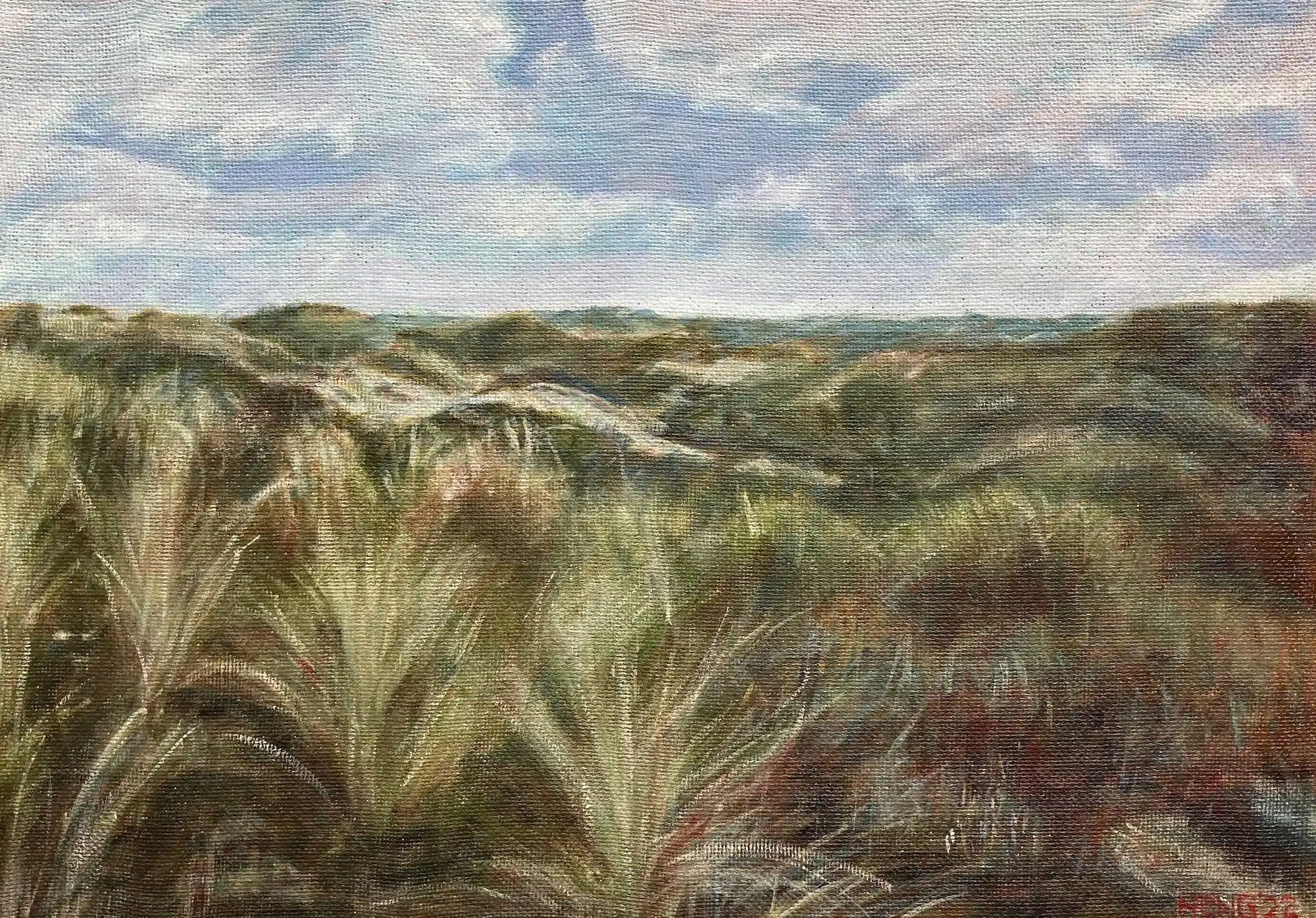 Duinen bij Wassenaar 2022 Olieverf op jute 70 x 50 in baklijst 74 x 54